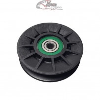 Flat idler pulley designed to guide the belt within the drive system.