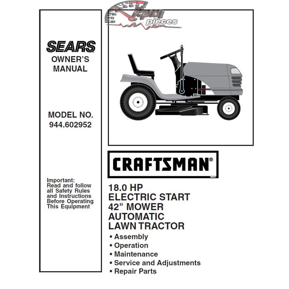- Manuel de pièces officiel pour tracteur Craftsman